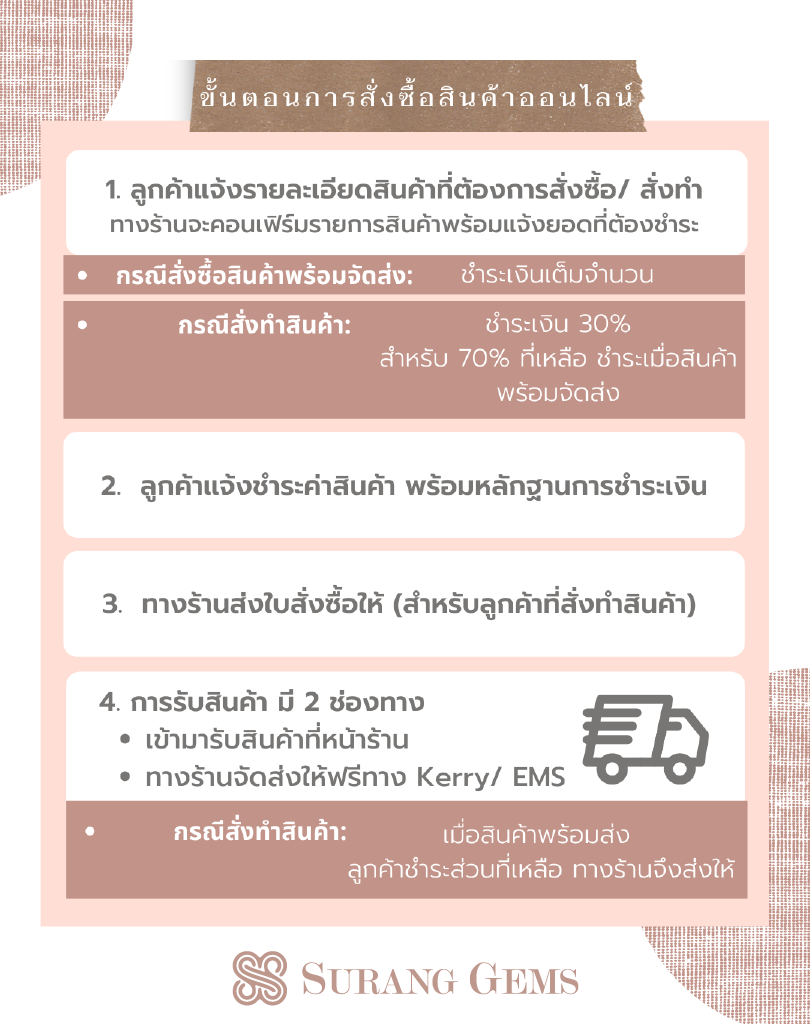 จิวเวลรี่ทุกชิ้นของ Surang Gems มีการรับประกันตลอดอายุการใช้งาน