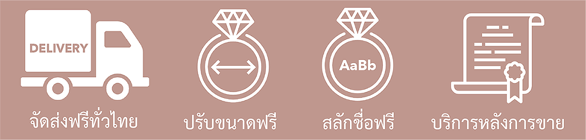 - บริการปรับขนาดแหวนเพชร เพิ่ม/ลดขนาดไม่เกิน 3 เบอร์ หรือขัด/ชุบให้ดูสภาพเหมือนใหม่ ฟรี 1 ครั้ง (กรุณานำใบรับประกันของทางร้านเข้ามาทุกครั้งเพื่อรับบริการ)